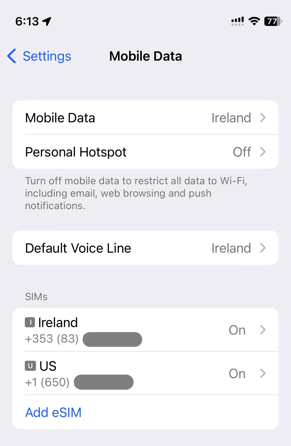 In our case, we have T-Mobile in the US and Eir here in Ireland. Our Eir SIM is €15/month for unlimited calls, text and data (and effectively no contract, technically it’s on a 30-day contracts) – it’s a better deal than we ever could get in the US.