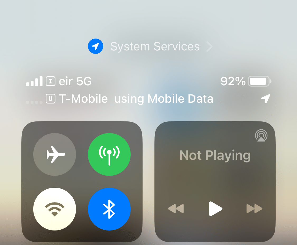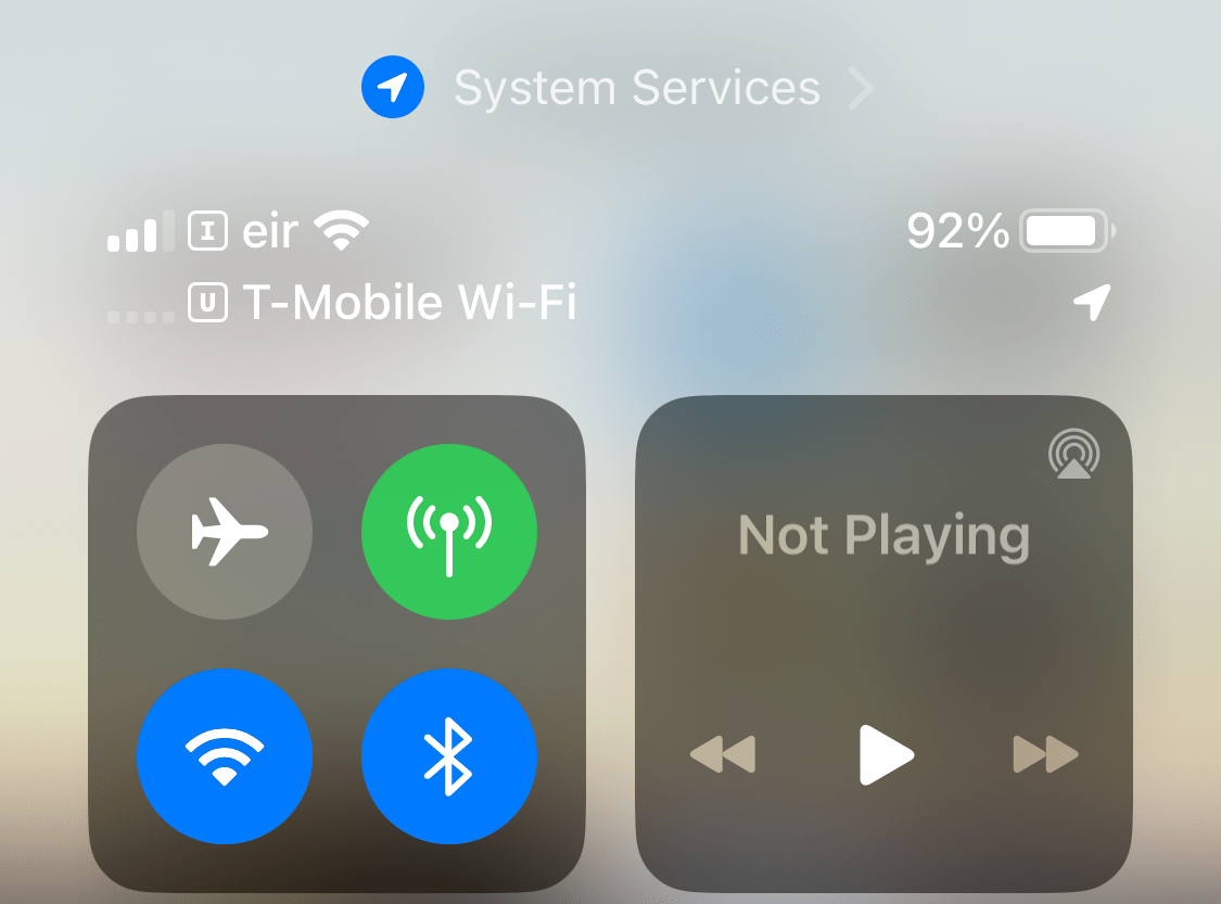 The key bit is that the 2nd line shows “T-Mobile” and either “Wi-Fi” or “using Mobile Data”. You’ll note that T-Mobile has no bars – that’s what we want.